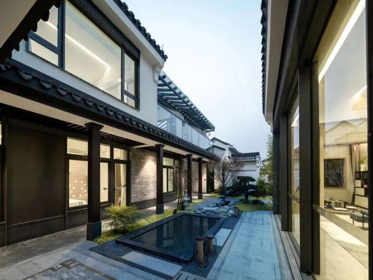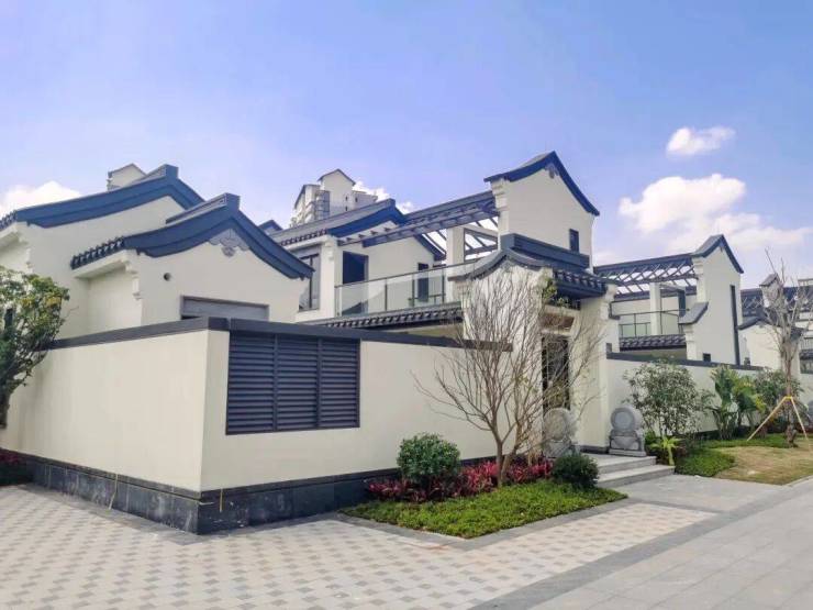 别墅组团——【院落东方 现代中式人文府邸】项目的院墅是 广州北首个真正意义上的东方中式院子建筑,秉承着三代人的传承理想,重现高端圈层人士对生活的仪式感及对豪宅挑剔的品质感,是传承家族富人阶层的占有领地。2017年荣获“广东省科技创新专项一等奖” ,1.8超低容积率墅区,超2.5倍赠送率,包括花园、露台等,舒适度、实用率高,且户户温泉入户。园林设计取古典造园哲思,外立面以徽派建筑中传统的白色墙身为基调,白墙黛瓦,保留中国传统院落精华的同时,糅合传统东方人居生活方式。颜色和材质的运用上更加适合现代人的居住习惯和审美情趣,同时又不失中式韵味。