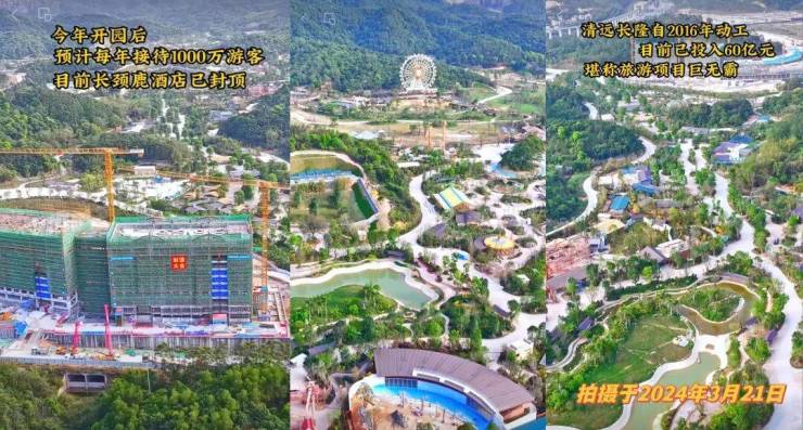 清远长隆国际森林度假区,清远长隆是全国第三座长隆乐园,也是规模最大的长隆乐园,项目总投资近300亿元,占地14.4万亩,相当于15个番禺长隆。 预计2024年上半年建成首期对外运营,2025年全面建成运营。