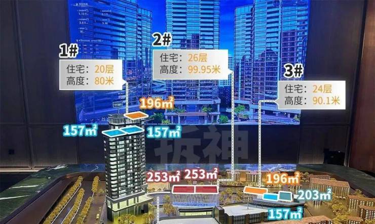 项目一共有3栋楼,层高20-26,总户数仅166户,产品为157-196-203-253-257平大平层,主打豪宅,面向的客群非常纯粹。