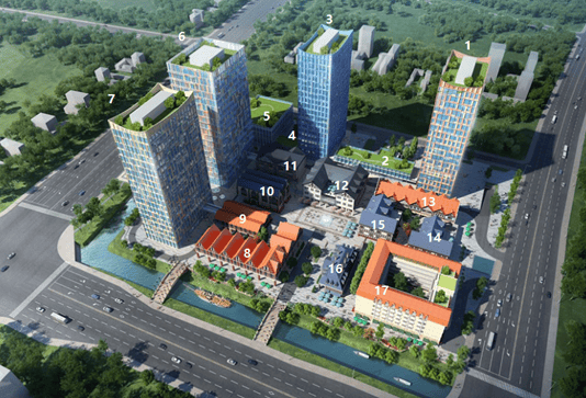 项目总占地约 6.03 万平方米,总建筑面积14.34 万平方米,包含4栋高层塔楼、13栋多层建筑及 873 个地下机动车停车位。