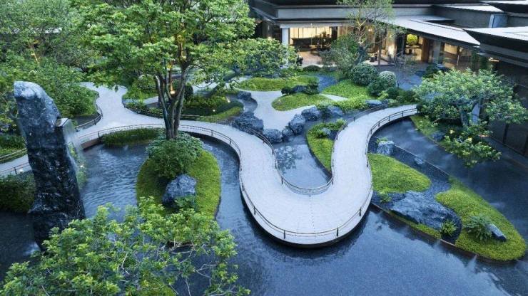 项目的核心亮点是:内部园林参照余荫山房风格打造,假山流水、亭台绿植错落有致,营造出东方诗意居住氛围。