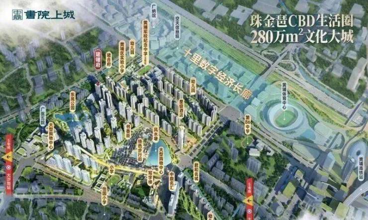 集科创、政务、商务三大核心于一身,与项目一路之隔,就是体量达200万㎡的数字产业园。