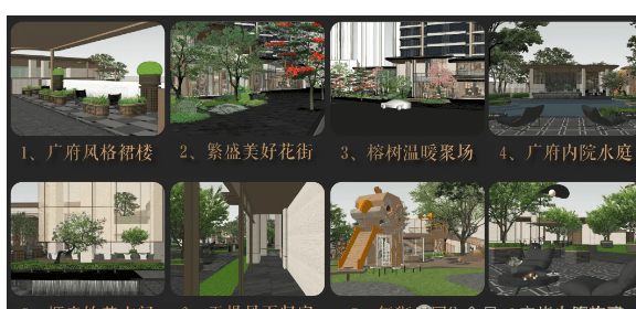 项目空间独具特色,将广府元素融入社区,自带八大主题全龄段泛会所,焕新海珠新生活方式。越秀采用城市会客厅 + 街角文化公园 + 榕树要素,打造老友闲聚街区、榕树温暖聚场等,充满广府风情。