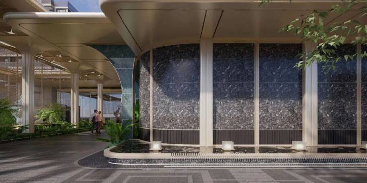 一重酒店式落客:数百万级投入,80米落客前场尽显气度;二重入口前厅:2.6 米主题雕塑与水景相映;三重下沉水院:通透玻璃幕墙围合精琢庭院;四重中央园林:四季有景,空间流畅;五重精装大堂:酒店式入户,超阔挑高,赋予归家尊崇感。