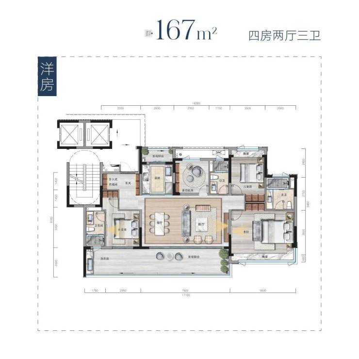 户型:约115㎡(小高层),约115~167㎡(洋房)