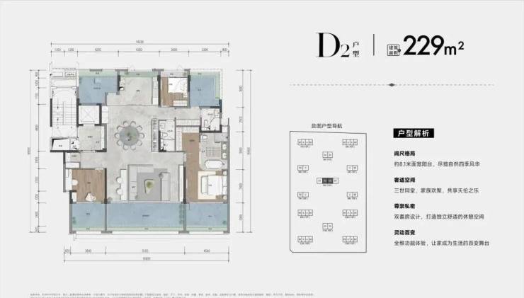 建筑面积约:130-229m²湾芯环幕大平层