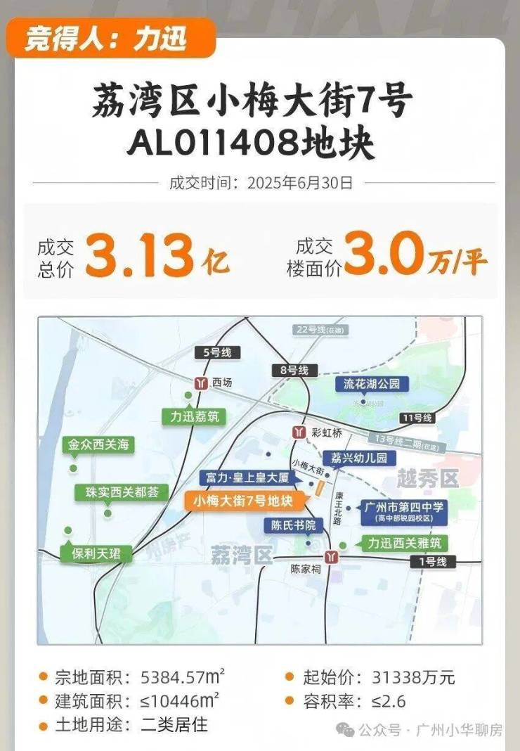 当时本土民企力迅以3.13亿元的价格竞得了这块地,折合楼面价3万/平米。