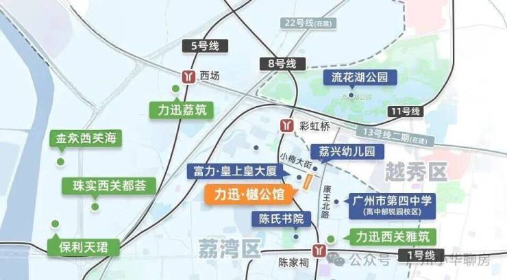 项目地块所处的位置,在老荔湾康王北路,距离越秀仅一公里,500米内拥双地铁:陈家祠站(1/8号线)和彩虹桥站(8/11/13/22号线),交通很方便。