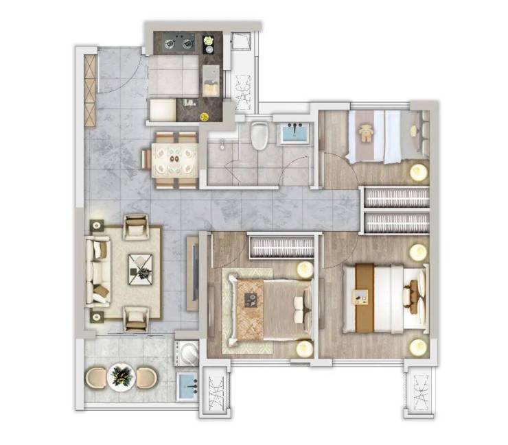 建面约79㎡三房两厅一卫