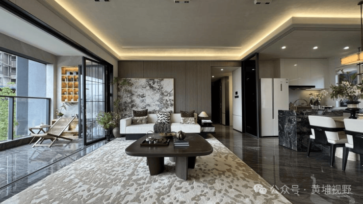 阔绰景观阳台,刚好俯瞰约2000㎡阳光草坪和泳池庭院,观景视野绝了。