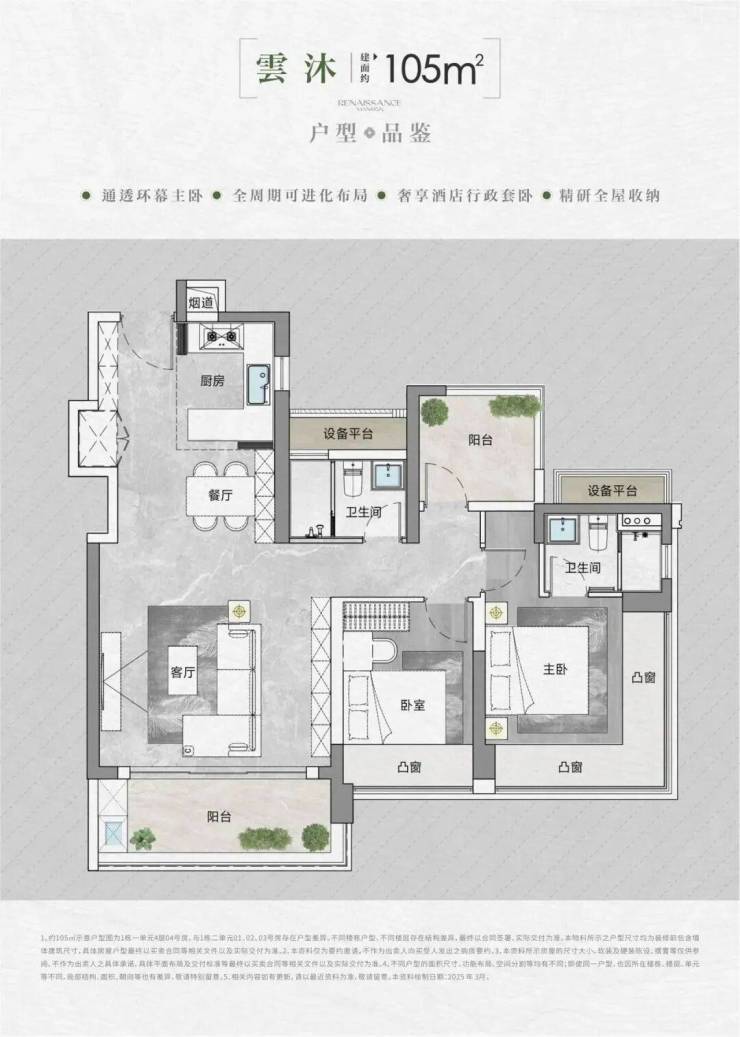 • 得房率:通过创新性的飘窗、双阳台改造、设备平台赠送等设计,实现平均94-96%的惊人得房率。