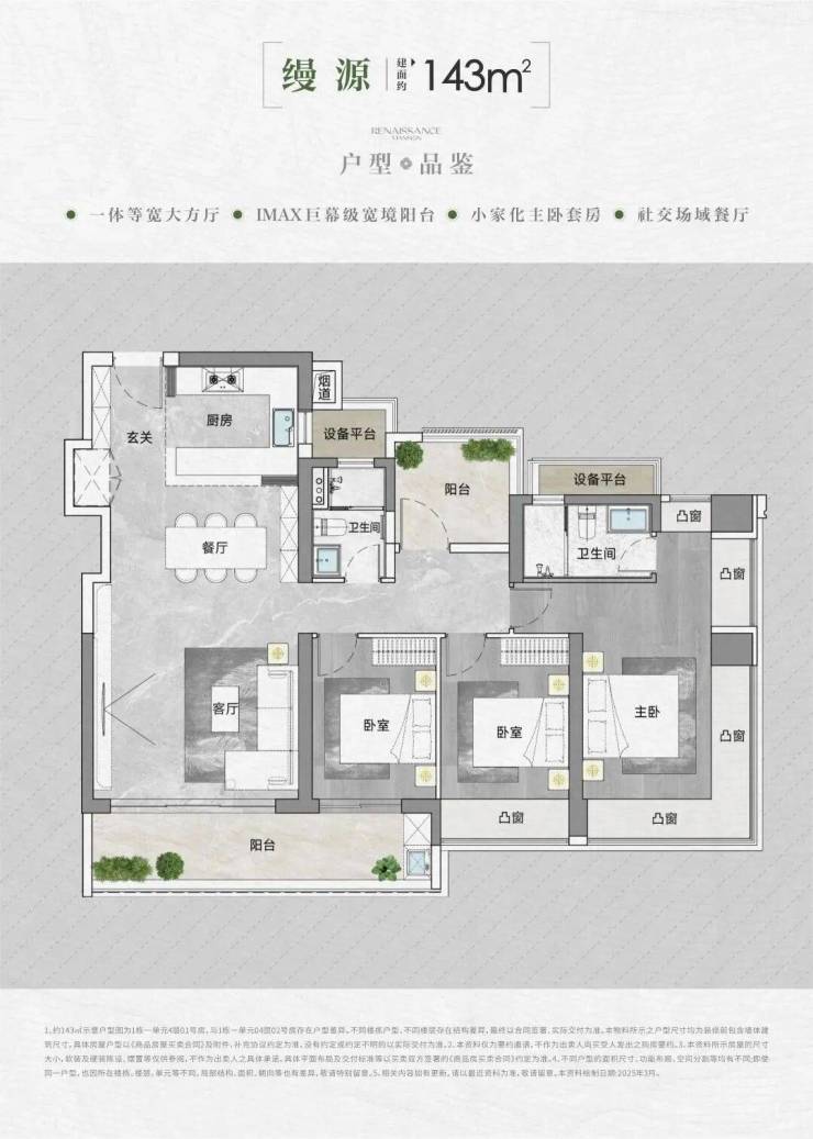 面积与户型:推售房源涵盖建面约90-95-105-143㎡的3-4房,共298套可售房源。其中,95/105㎡三房户型以朝东为主;90㎡三房户型朝西;143㎡四房大户型东南朝向。