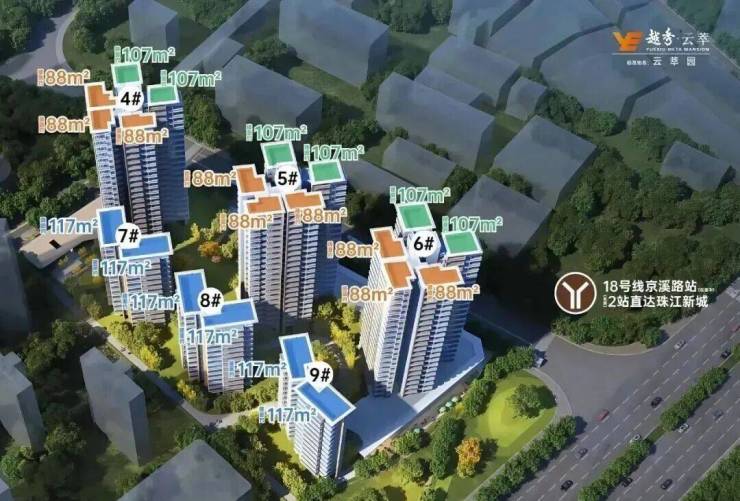 云悦二期算是一个双地铁项目。一来,家门口就是18号线京溪路站。未来业主,下楼乘坐18号线,就能一线直达琶洲(磨碟沙站)、珠江新城(冼村站)、天河北(广州东站),万博(南村万博站),根本不需要换乘。而步行约800-900米,就能到达3号线梅花园站。同样,乘坐地铁无需换乘,便能抵达体育西路、珠江新城。