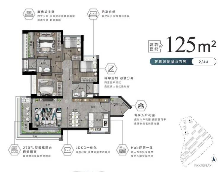 🏠高层建面约125㎡ 270度转角湖山四房