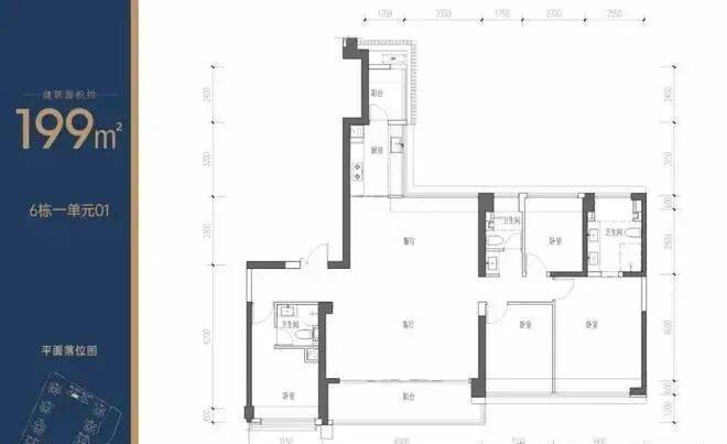 199㎡的4房2厅3卫,设计的是竖厅格局,2梯2户,专梯入户,独立入户玄关,LDKB一体化设计,客厅超大开间,四开间朝南,双主卧套间,客厅超大阳台看花园全貌景观,二字型厨房带1个生活阳台,公卫三段式分离,得房率约95%(包含赠送),正南朝向。