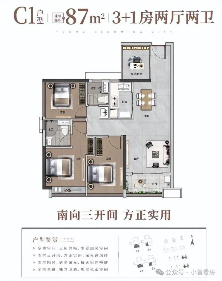 高性价比的全龄段人居N+1户型,户型涵盖约70-140㎡三-六房。