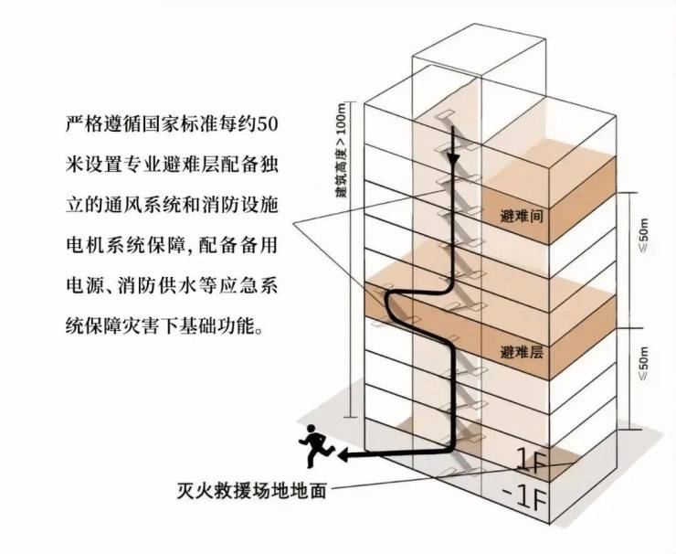 核心筒、承重结构、电缆井等,关键部位采用更高耐火等级材料,保障火灾时结构完整性时长更久。