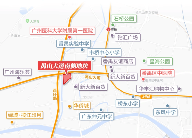 3km汇聚三大商圈,吃喝玩乐购应有尽有!约1km可达市桥城芯商圈:易发商业街、钻汇广场、兴发里(规划中)、钻汇新城POD(规划中);约2km可达市桥南商圈:奥园广场、桥南汇(即将开业);约3km可达番禺广场商圈:永旺梦乐城、基盛万科里。(直线距离,数据来源:百度地图)