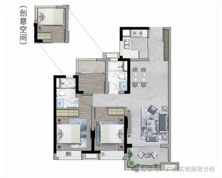 约80㎡2+1房2厅1卫