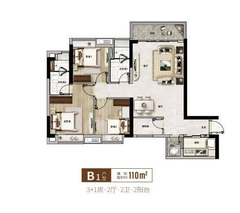 110㎡ 3+1房户型