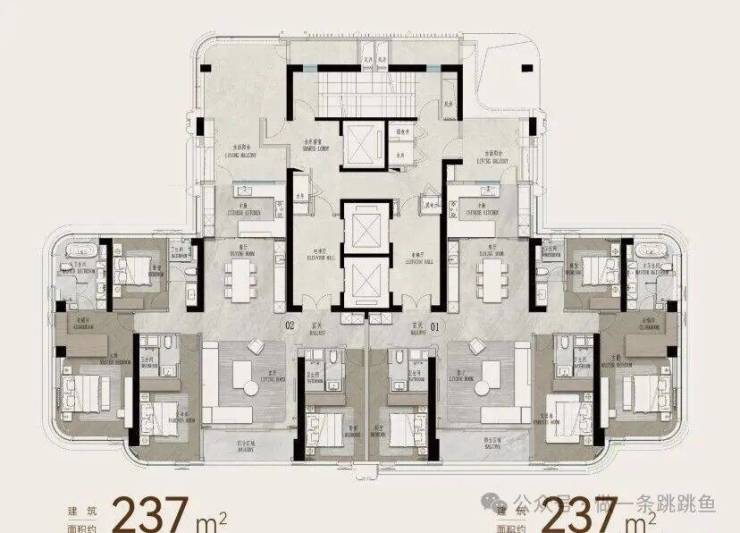 优点:1、客厅双面采光,东向观景,另一面朝南。只是东面的开间不大,部分视野的角度会被304㎡挡住。