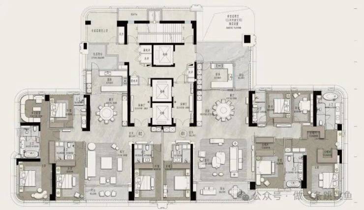 二、294㎡户型,四房四卫三主套。