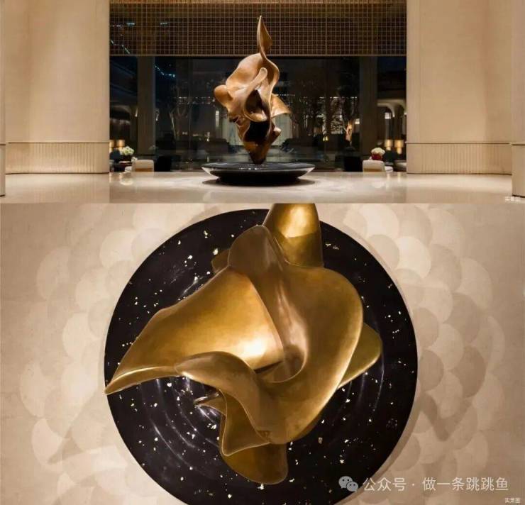国际艺术家约翰·阿特金打造的雕塑《潮涌》,立于大厅中央,以粤剧“水袖舞”的动态意蕴,展示着珠江之水的生生不息。