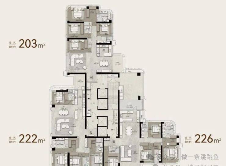 对比:保利面粉厂大部分户型南北通透,仅有3栋203㎡、222㎡和9栋436㎡为了景观牺牲了通风。