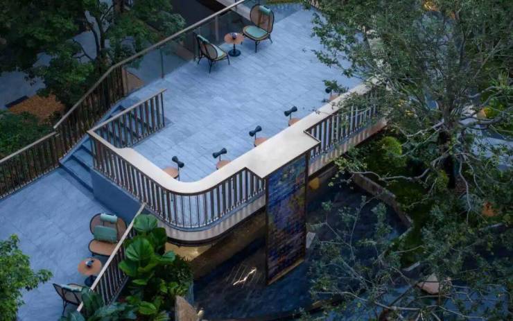 下沉式观瀑亭、露天社交会客厅,水院、园林及各种鲜花交织,仿若置身伊甸花园谧境。