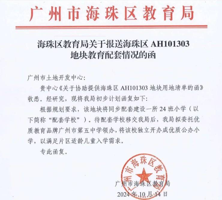 👉 学校方面,配套24班小学,确定引入广州五中教育集团进行管理,也是打败了海珠多数新盘。(具体入读政策以当年教育局公布为准)