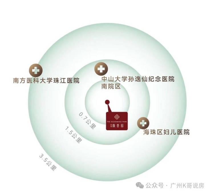 约750米中山大学孙逸仙纪念医院(三甲)约1.5公里海珠区妇儿医院约3.5公里南方医科大学珠江医院、广州医科大学附属第二医院。