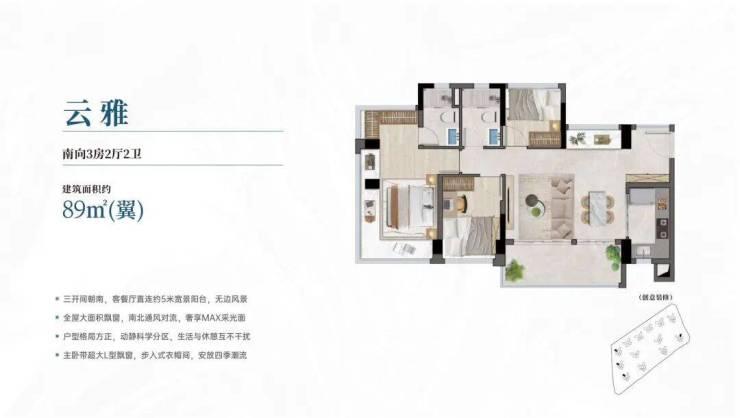5栋户户尽享约270°三面采光,全南的主朝向设计,确保每个角落都能沐浴在阳光里,不仅带来了全天候的明亮与通透,也增加了空间开阔感。无论是客厅的闲聊,还是书房的独处,都充满舒适与惬意。