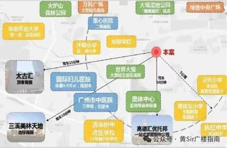 商业:高德汇优托邦(车程10分钟),天河万科广场(车程约15分钟),珠江新城商圈直线距离9km(车程约20分钟)