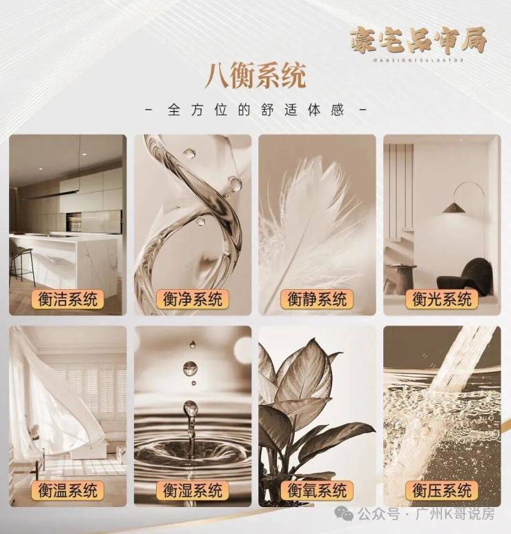 同时,玥玺湾围绕空气、水、声、光、温度、湿度、含氧量等指标,打造了一套服务于广州气候特色的「八衡系统」。