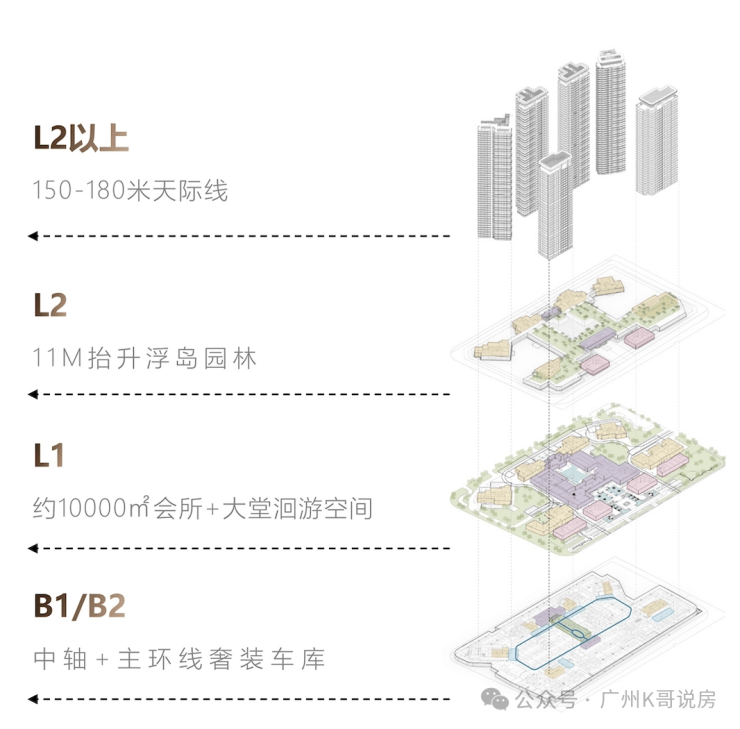 B1和B2是业主的归家环线,包括星空顶的奢装车库以及中轴,通过酒店式环岛落客,给足排面。