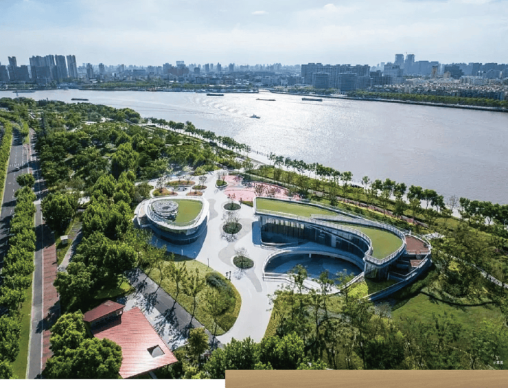 港与人、水与城,回溯千年码头记忆,重现历史与场所的故事。园林整体以一轴一心两环的空间结构重塑千年繁荣古港之境。时光之轴、中心下沉剧场、文化记忆环及商业艺术环以时间为唤醒时光印记,赋予新时代使命。