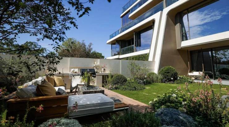 社区整体采取坡地抬升设计,利用坡度差打造户户均有下沉领域,让天地均捧着阳光;更有天幕级空中场域,保证临湖视野尽展无余。