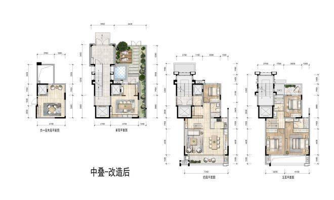 中海熙园提供的叠院产品包括下叠、中叠和上叠三种户型,每种户型都注重私密性与空间的最大化利用。下叠户型建面131㎡,实际可用约400㎡,拥有近70㎡的私家花园和近90㎡的地下空间,非常适合追求独立生活空间的家庭。中叠和上叠户型的设计相似,建面131㎡,实际可用面积高达300㎡,四层或五层的叠加结构为家庭提供了更灵活的生活空间,同时配备了私家电梯,提升了居住的舒适度与便捷性。