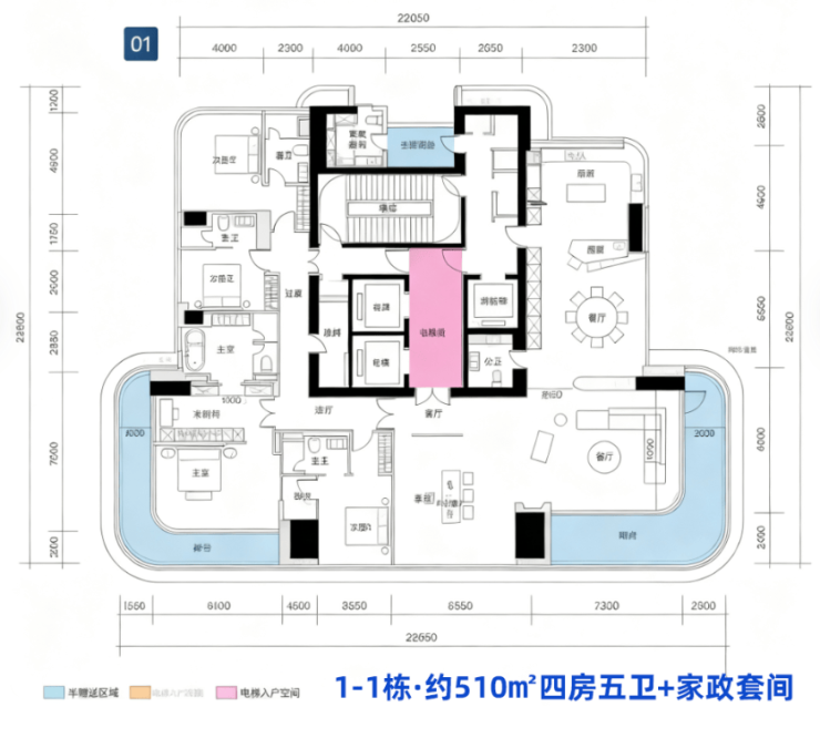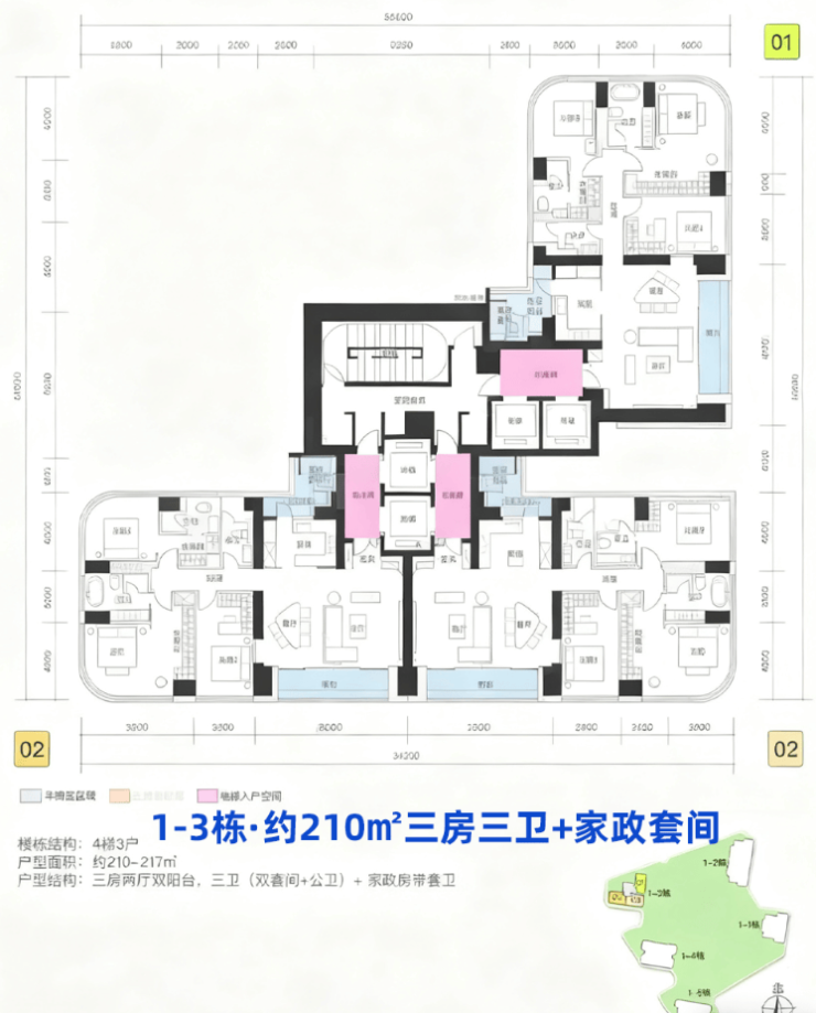 2.面积210到510的平层,社区圈层纯粹高阶
