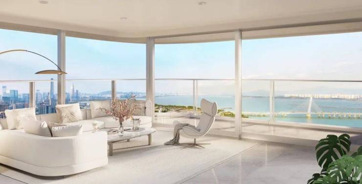 由于大部分户型主阳台都是多面取光,部分302㎡能看到东南,而370-510㎡还可以看到东北面深圳湾城市天际线。