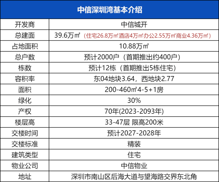 「中信信悦湾」的景观主要在于西南和东南,其中211-218-302㎡主朝西南向是看海域方向,而个别218-370-510㎡主朝东南向是看深圳湾大桥方向。