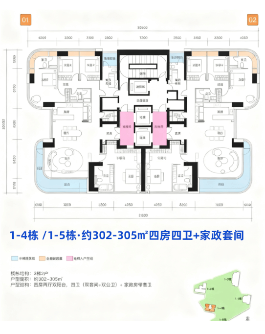 D栋 305㎡ 层高3.5 四房,80余套