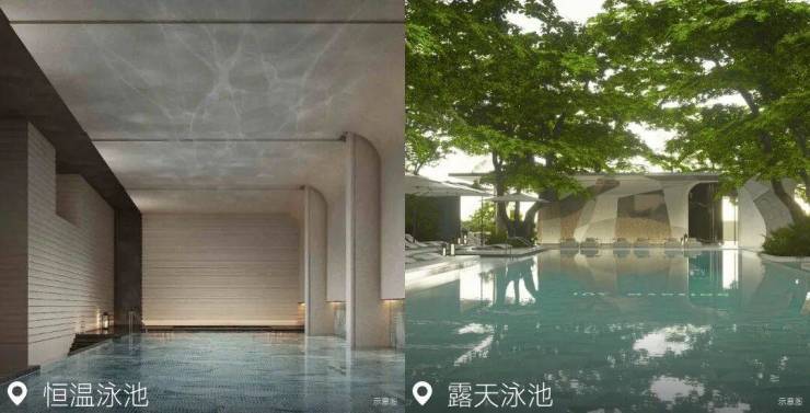 小区有两个泳池,一个室外40米长的泳道,一个室内25米长的恒温泳池。