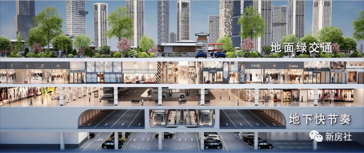 地下枢纽:213万㎡的5层地下交通枢纽,涵盖交通及商业休闲功能