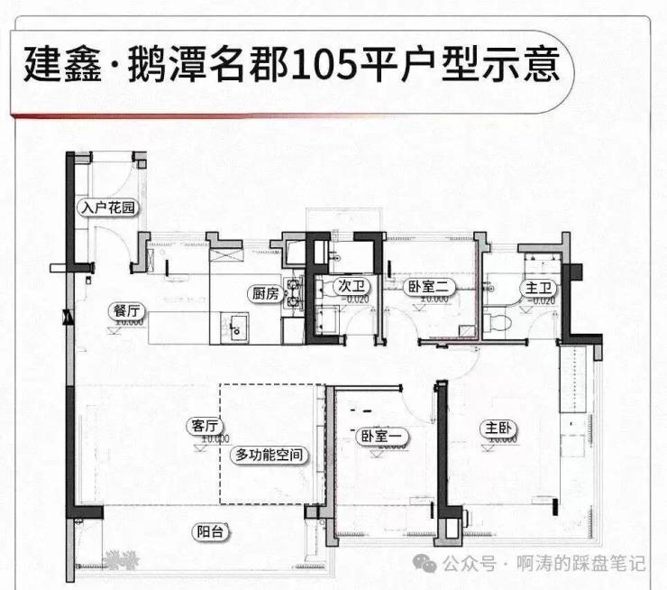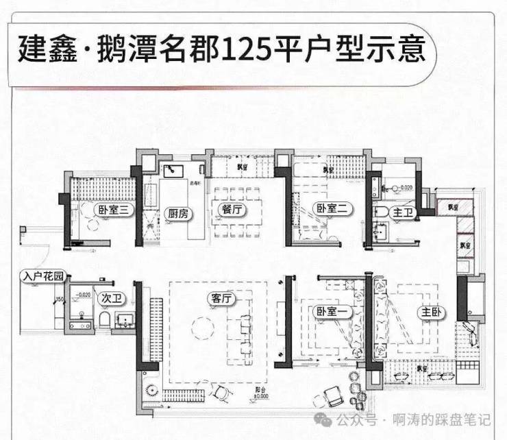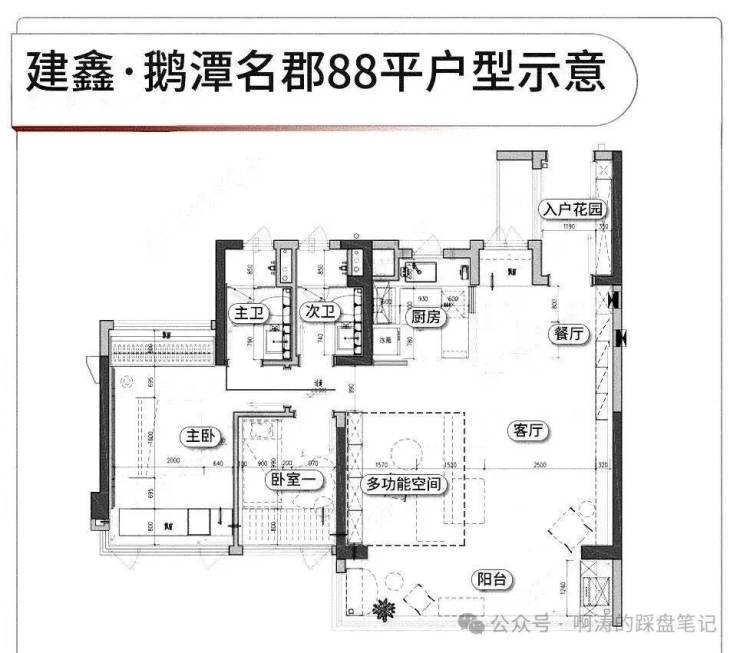 整个社区采用围合式布局,中间有大片园林。货量预估900+套,体量不算大。项目将打造三个样板间,分别是建面约88、105和125平。
