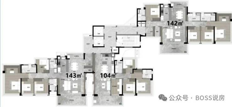 项目的二期优先开发最南端的四栋,首开2栋小高层和2栋高层,同时保留一期超高120%的使用率,全南向布局,小高层3.3米层高和双主套设计。