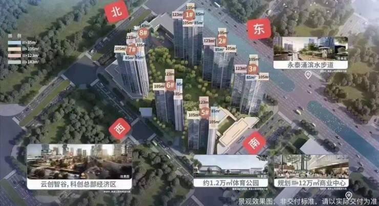 产品方面,主打85、105、123、143m²三四房,主打2梯4户(部分楼栋2梯5户),南向户型设计,打造轻奢美学立面,酒店式入户大堂,尊享归家礼序。