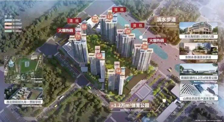 整个项目占地超6.6万㎡,总投资超37亿!规划建6栋住宅,32-33层高,合计859户,配建一所12班幼儿园,西北侧还规划1所九年一贯制学校。