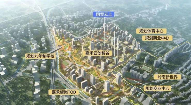 “白云新城嘉禾望岗商务核心区及产城融合的TOD综合开发示范区”,虹吸巨量的高精尖人才汇聚于此,顶级流量交通枢纽+千亿级产业集群,中心价值将再次飞跃。