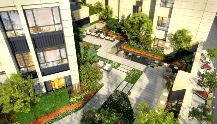 · 立体园林:项目采用半围合式布局,打造首层生态花园、二层空中花园、顶层天际花园三层立体景观。在土地资源稀缺的老城区,这样的设计不仅提升了居住私密性,更营造出“推窗见绿、出门入园”的生态体验。